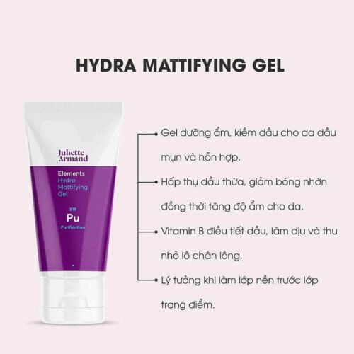 - Juliette Armand Hydra Mattifying Gel được yêu thích vì công nghệ thông minh từ nhà Juliette Armand giúp tiết kiệm cho quy trình chăm sóc da nhờ “tích hợp” 2 trong 1 vừa kiềm dầu vừa dưỡng ẩm.