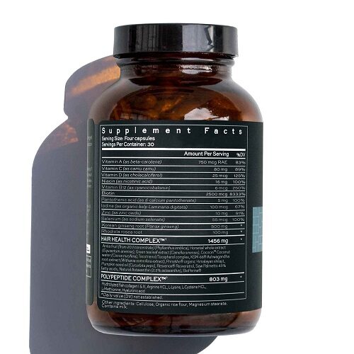 - Vitamin A, Vitamin C, Vitamin D, Niacin, Vitamin B12, Biotin, Pantothenic acid, Iodine, Zinc, Selenium, Korean ginseng root, Rhodiola rosea root, Amla fruit, Horsetail whole extract, Green tea leaf extract, Cococin Coconut water, Tocotrienol/Tocopherol complex, KSM-66 Ashwagandha root extract, PrimaVie organic Himalayan shilajit, Pumpkin seed oil, Resvenox Resveratrol, Saw Palmetto 45% fatty acids, Natural Astaxanthin, BioPerine, Hydrolyzed fish collagen I & III, Arginine HCL, L-Lysine, L-Cysteine HCL, L-Methionine, Hyaluronic acid